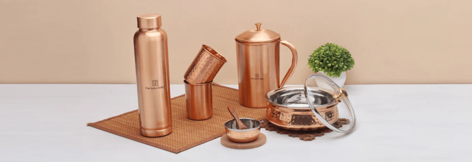 items, including copper bottles, copper water dispensers, copper handis, and more.